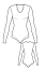 Женское боди плотноприлегающего силуэта с длинными рукавами и овальным вырезом горловины. Рукав одношовный втачной до уровня запястья. Вырезы для ног обработаны двойной обтачкой. В области паха застежка на крючках. В зависимости от введенных мерок на переде может открыться вытачка в боковой шов. Выкройка строится с учетом коэффициента растяжимости вашего материала.