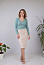 Лонгслив облегающего силуэта с V-образным вырезом из эластичных материалов. Рукав реглан с вытачкой. Вырез лонгслива обработан бейкой из основного материала. Лонгслив может быть выполнен из трикотажных полотен, лайкры, кружевных полотен. На фото лонгслив из трикотажа "лапша" выкройка построена с коэффициентом растяжимости 0.83.